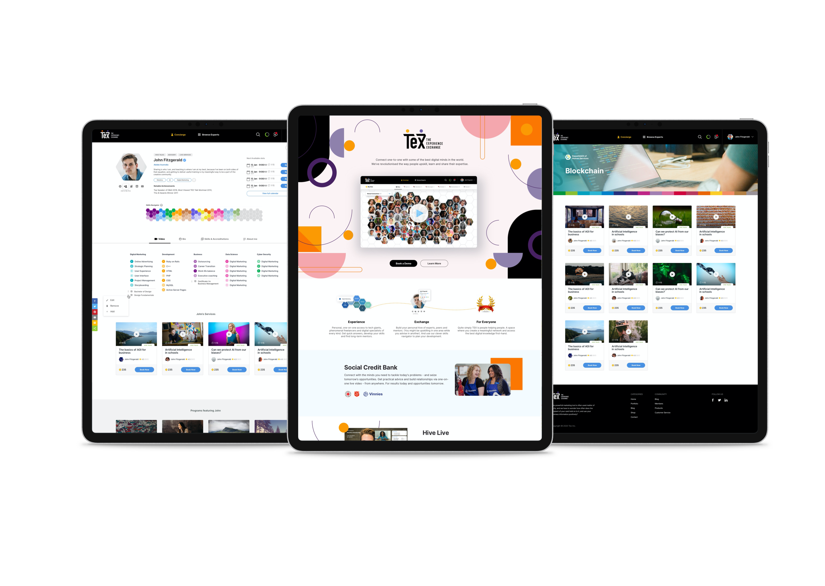 “Connect with the right people at the right tim. Our complex algorithms use your skills and goals to match you with the people you need. TEX builds an in-depth map of your expertise and helps you fill in the gaps.”